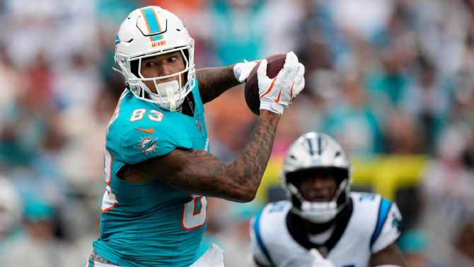 13. Darren Waller, TE, Miami Dolphins: After scoring 17.7 points in his first game of the season last week, Waller was productive again in Sunday’s loss to the Panthers. With an increase in snaps and routes run (26), Waller had 18.7 points in Carolina, catching all five of his targets for 78 yards and a touchdown. Waller has now scored at least a touchdown in each of his two games played, and he can still stretch the seams out in the field. With Tyreek Hill out for the season, Waller’s role as a middle-of-the-field option should remain steady in the Miami offense. Waller (available in over 50% of ESPN leagues) should be a top waiver add ahead of the Week 6 matchup versus the Chargers. — Bowen
